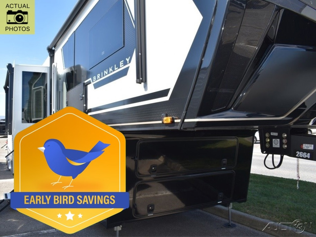 With any Model G toy hauler fifth wheel by Brinkley you will enjoy luxurious amenities, tons of storage space, and innovative features that have been developed and tested in the real world. Durable construction includes an industry leading PDI process, an industry best insulation package, and reinforced and walkable slide roofs. Some of the exterior features you'll find are a 3-way pass-through with a multi-functional flip-up bulkhead wall, under I-beam storage, a MAX-Vision reverse lighting system, and a low-maintenance roof to name a few. A Rockford Fosgate audio system comes standard, along with a OneControl app system that lets you control your fifth wheel's functions right from your mobile device. You will find the solar system with a designated storage area to be ultra convenient, plus there is a FlexPower 5500 with a dual fuel inverter generator for all your power needs. Head inside to find a residential interior with Brinkley's CraftSense wood trim construction, floating entrance steps, integrated window screens and insulated blackout blinds, and residential solid surface countertops plus backsplash. You will also enjoy the neon shower lighting and recessed medicine cabinets in the bath, plus motion activated LED bed lights and dual bedside outlets in the bedroom. Choose a Model G toy hauler fifth wheel to experience all the luxury it has to offer!
