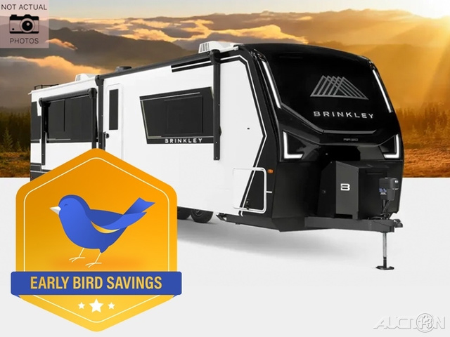 The drop frame chassis will provide a smooth tow from home to campground, and the one-touch automatic leveling system will have you set up in no time. You will love the sleek styling with automotive-grade exterior graphics, along with the square Euro frameless windows with 6" openings. Inside, there are premium residential cabinet and drawers, solid surface countertops, Brinkley's CraftSense wood trim construction, and many more premium features.