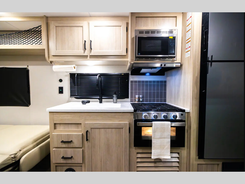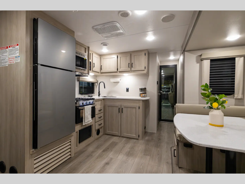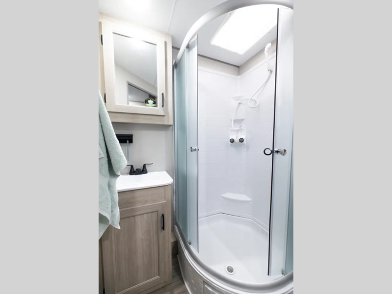 Sleeps 4 Length 29 ft 10 in Ext Width 8 ft Ext Height 10 ft 7 in Int Height 6 ft 9 in Hitch Weight 957 lbs GVWR 7900 lbs Dry Weight 5486 lbs Cargo Capacity 2414 lbs Fresh Water Capacity 44 gals Grey Water Capacity 40 gals Black Water Capacity 30 gals Furnace BTU 30000 btu Available Beds Queen Refrigerator Type GE Stainless 12V Refrigerator Size 10.7 cu ft Cooktop Burners 3 Shower Size 34" x 34" Number of Awnings 1 LP Tank Capacity 20 lbs Water Heater Type Tankless AC BTU 13500 btu Awning Info 15' Electric with Multi-Color Lights Axle Count 2 Number of LP Tanks 2 Shower Type Radius Electrical Service 30 amp Similar Floorplans