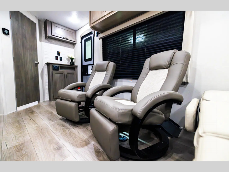Sleeps 6 Slides 1 Length 35 ft 8 in Ext Width 8 ft Ext Height 11 ft 1 in Int Height 6 ft 9 in Hitch Weight 1162 lbs GVWR 10578 lbs Dry Weight 7578 lbs Cargo Capacity 3000 lbs Fresh Water Capacity 38 gals Grey Water Capacity 42 gals Black Water Capacity 29 gals Furnace BTU 30000 btu Available Beds Queen Refrigerator Type GE Stainless 12V Refrigerator Size 10.7 cu ft Cooktop Burners 3 Number of Awnings 1 Garage Size 11 ft LP Tank Capacity 20 lbs Water Heater Type Tankless AC BTU 13500 btu Awning Info 15' Electric with Multi-Color Lights Axle Count 2 Number of LP Tanks 2 Shower Type Tub/Shower Combo Electrical Service 30 amp Similar Floorplans