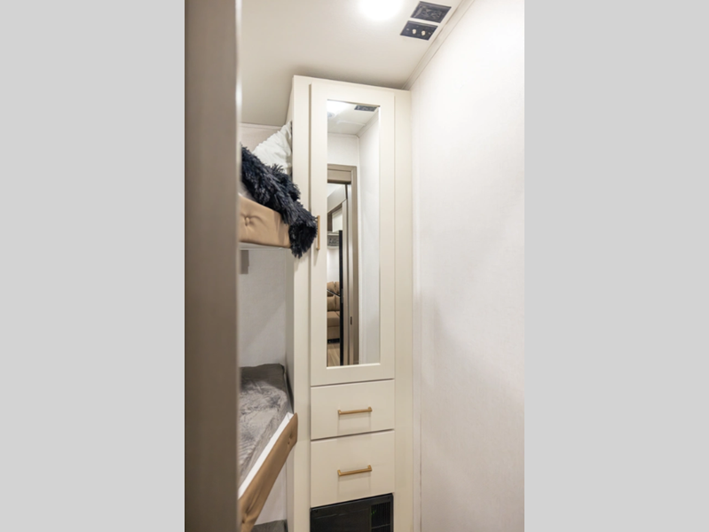 Sleeps 7 Slides 4 Length 42 ft 1 in Ext Width 8 ft Ext Height 13 ft 4 in Hitch Weight 2220 lbs Dry Weight 13019 lbs Cargo Capacity 3201 lbs Fresh Water Capacity 64 gals Grey Water Capacity 132 gals Black Water Capacity 88 gals Furnace BTU 35000 btu Number Of Bunks 1 Available Beds King Refrigerator Type 12V Refrigerator Size 16 cu ft Cooktop Burners 4 Number of Awnings 2 LP Tank Capacity 30 lbs Water Heater Type On Demand Tankless AC BTU 27000 btu TV Info LR 50" TV Awning Info 10' and 15' Power w/LED Lights Axle Count 2 Washer/Dryer Available Yes Number of LP Tanks 2 Shower Type Standard Electrical Service 50 amp Solar Wattage 200 watts Similar Floorplans