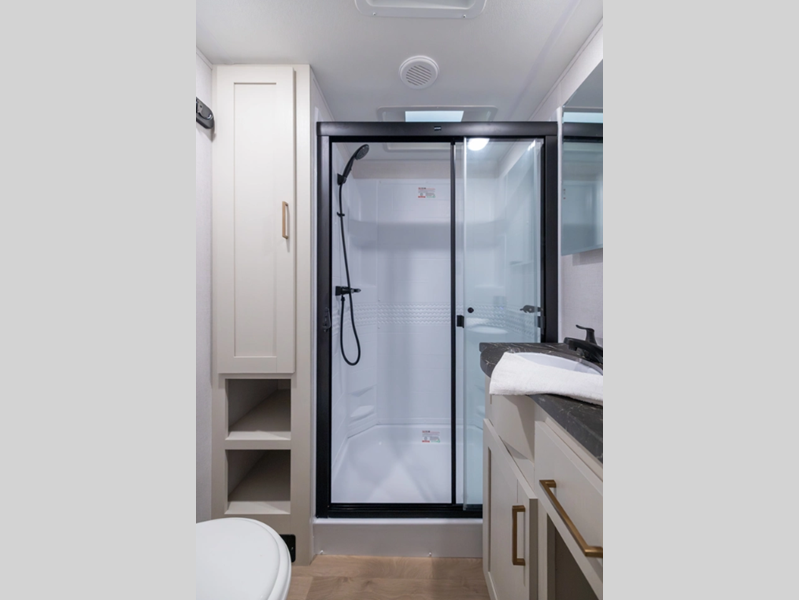 - Large Shower w/ Retractable Shower Door & Skylight