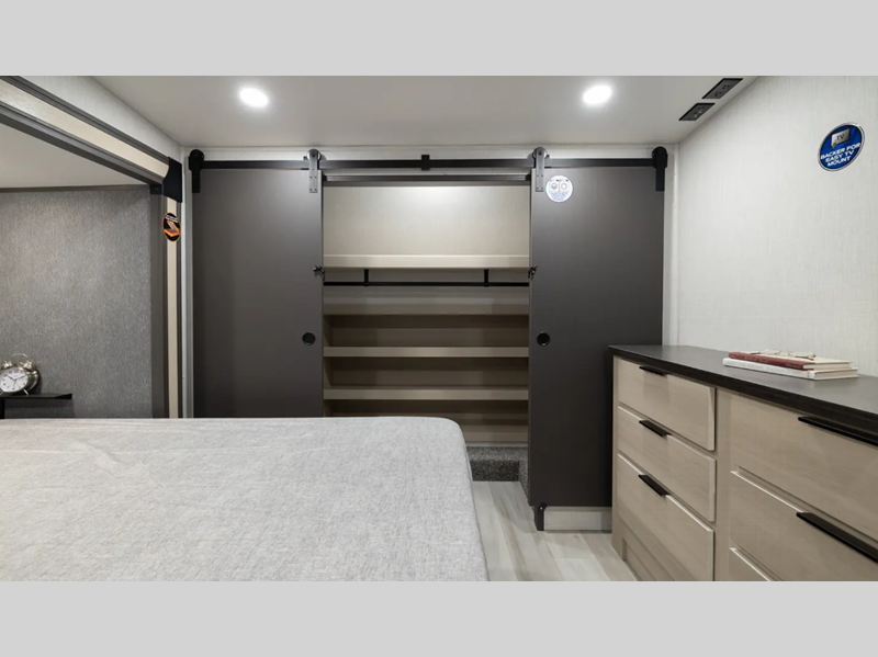 Sleeps 5 Slides 4 Length 43 ft 3 in Ext Width 8 ft Ext Height 13 ft 6 in Hitch Weight 2150 lbs GVWR 14908 lbs Dry Weight 12208 lbs Cargo Capacity 2700 lbs Fresh Water Capacity 60 gals Grey Water Capacity 114 gals Black Water Capacity 76 gals Furnace BTU 35000 btu Number Of Bunks 3 Available Beds King Refrigerator Type 12V Refrigerator Size 16 cu ft Number of Awnings 1 LP Tank Capacity 20 lbs Water Heater Type On Demand Tankless AC BTU 18000 btu TV Info LR LED TV Awning Info 19' Power Axle Count 2 Washer/Dryer Available Yes Number of LP Tanks 2 Shower Type Standard Electrical Service 50 amp Similar Floorplans