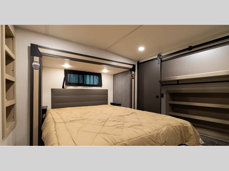 Each model is constructed with a vacuum bonded, welded aluminum structure, along with a PVC roof membrane, residential fiberglass insulation, and many durable construction materials. You will love the oversized opening windows in the living room, the walk-in shower in the bath, and the residential backsplash in the kitchen. The Climate Package helps extend your camping season and the Expedition Package includes many hassle-free amenities such as an outdoor shower, heavy duty slam latch baggage doors, and 4-point auto leveling!