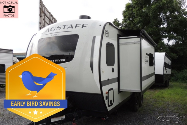 With any Flagstaff E-Pro travel trailer by Forest River, you will experience lightweight towing, style and features that will meet your needs, plus amenities that give you more than you expected! Built with interior and exterior composite sidewall construction for added strength and durability, a fully laminated roof for weather-tight protection, and aluminum truss roof bracing for enhanced stability.  These trailers are equipped with Dexter leaf-spring axles for smooth towing and durable performance. The interior features an aluminum dinette, bed, and bunk, providing a strong and lightweight framework for comfortable living. Additionally, the backup camera prep ensures a safe and stress-free reversing experience. Make your selection today!