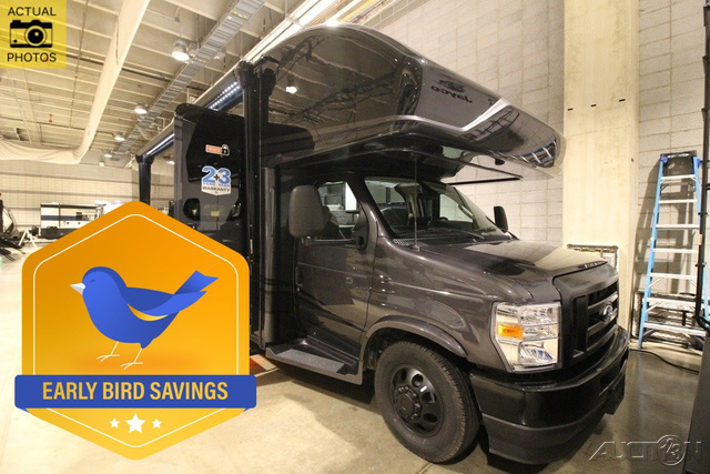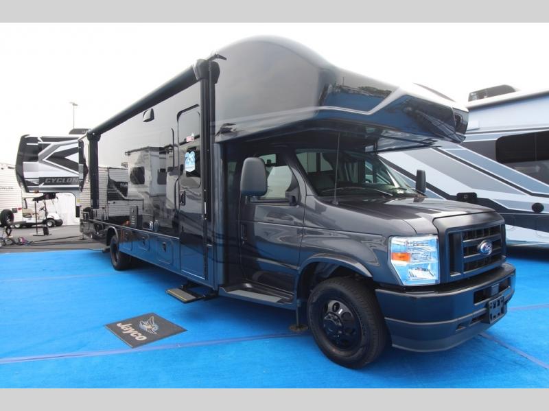 With any Greyhawk Class C gas motorhome by Jayco you will experience smooth sailing thanks to the JRIDE PLUS that comes with Koni shock absorbers, a computer-balanced driveshaft, Hellwig helper springs, and more. The Ford E-450 chassis with a 7.3L V8 325 HP engine will power your excursions, and you'll appreciate the added safety features for your peace of mind. Each model features a Sony infotainment center with Apple CarPlay and Android Auto, backup and side-view cameras, and a tire pressure monitor system the driver is sure to appreciate. Durable construction begins with Stronghold VBL roof, floor and sidewalls, bead-foam insulation, and a one-piece seamless fiberglass front cap. Head inside to find blackout night roller shades, LED-lit pressed countertops, an 84" interior ceiling height, and hardwood cabinet doors and drawers.
