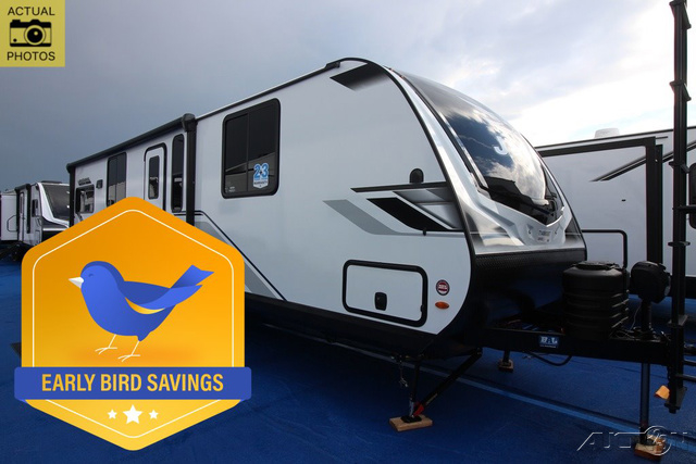 Sleeps 5 Slides 2 Length 35 ft 10 in Ext Width 8 ft Ext Height 10 ft 10 in Int Height 6 ft 6 in Interior Color Dune Gray Hitch Weight 985 lbs GVWR 8995 lbs Dry Weight 7265 lbs Cargo Capacity 1730 lbs Fresh Water Capacity 55 gals Grey Water Capacity 61 gals Black Water Capacity 30.5 gals Tire Size ST225/75R15E Furnace BTU 35000 btu Available Beds Queen Refrigerator Type 12V Refrigerator Size 11 cu ft Cooktop Burners 3 Number of Awnings 1 LP Tank Capacity 20 lbs. Water Heater Type On demand Tankless AC BTU 13500 btu TV Info LED Smart TV Awning Info 20' Max-Length Power w/LED Light Axle Count 2 Number of LP Tanks 2 Shower Type Standard Electrical Service 50 amp Solar Wattage 200 watts Similar Travel Trailer Floorplans