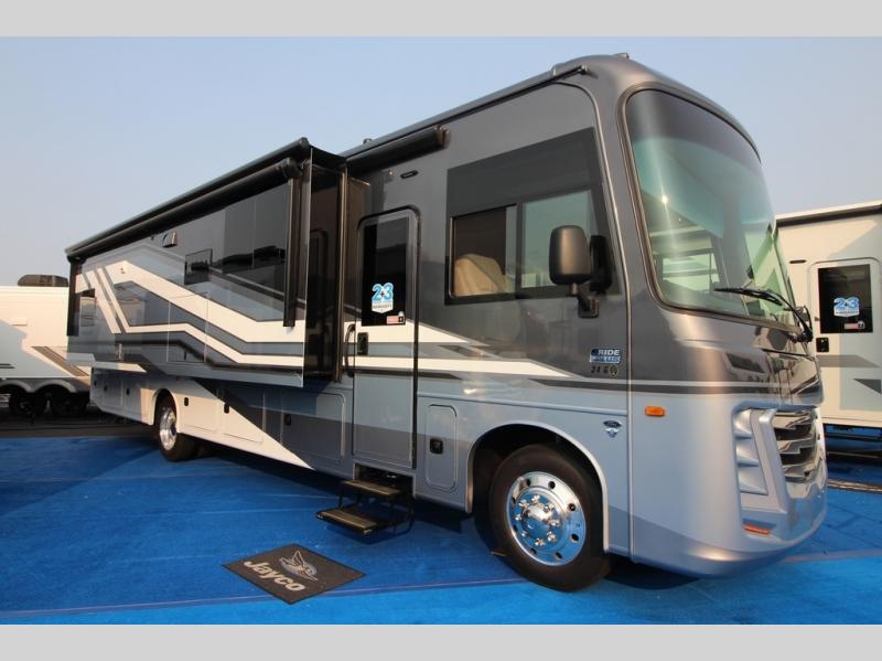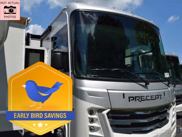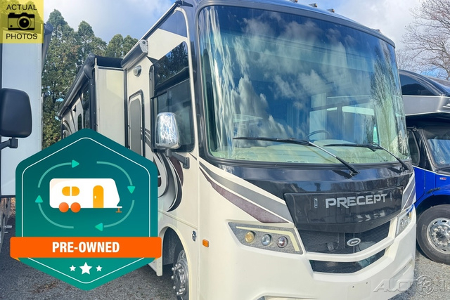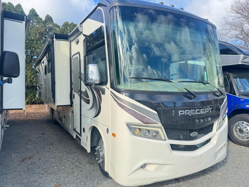 The Precept Class A gas motorhomes by Jayco are loaded with amenities to make each journey one to remember! You'll love the 120-inch windshield for a great view of the open road in front of you, and the new front cap with accent lights are sure to turn heads at the campground.