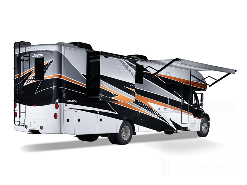 The Jayco Seneca Super C diesel motorhomes are built upon a Freightliner chassis with a Cummins ISB 360HP engine for power you can feel! Their superior towing power lets you tow a trailer or car to every destination, and the JRide premium handling package provides a smooth ride!