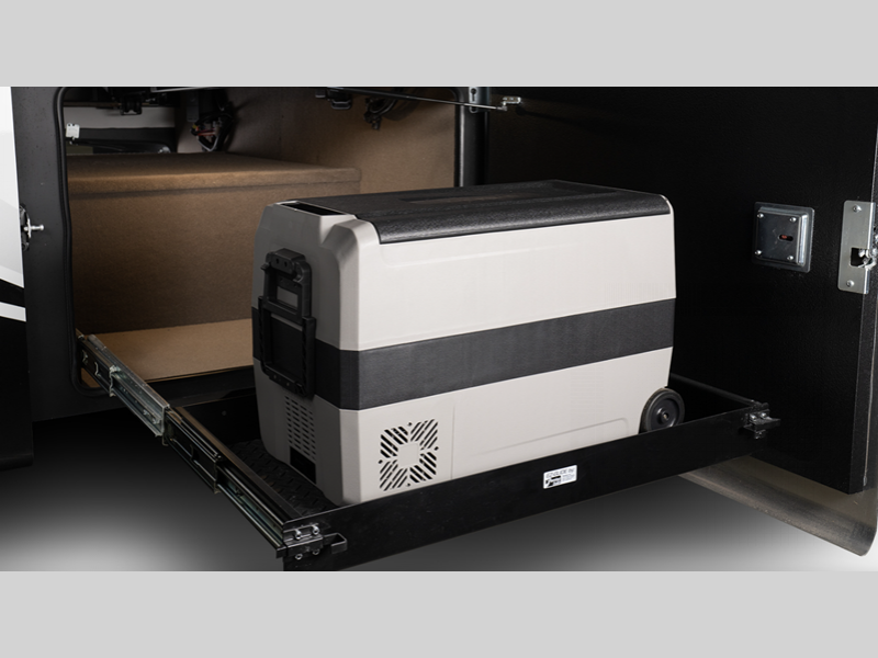 - Carpeted, full pass-through storage compartments with Keyed Alike lockable slam-latch doors