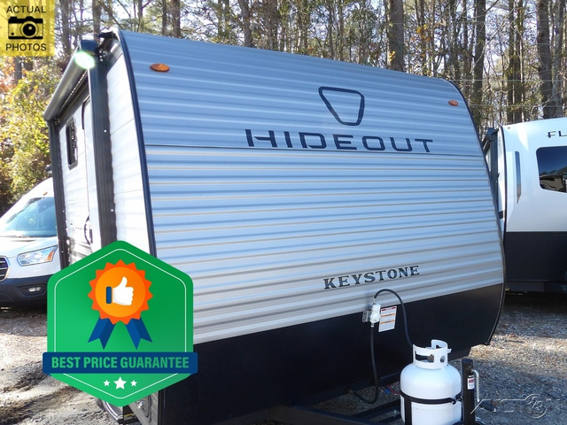 With any Hideout Mini travel trailer by Keystone, you will enjoy lightweight towing thanks to their single-axle! The AlphaPly TPO roof membrane is ultra durable, and the power awning will provide protection from the sun as you relax in your camp chairs outside. Each model includes blackout night shades, LED lighting, plus many more interior comforts. There is also a roof A/C and 20K BTU furnace to keep you comfortable, plus a tankless water heater for endless hot showers!