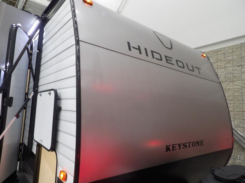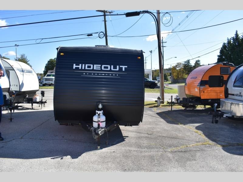 The Keystone Hideout travel trailers are your ticket to comfort and convenience at the campground! The walkable roof is ultra durable, and the power tongue jack will make towing easier than ever!